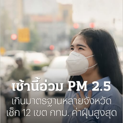 เช้านี้อ่วม ฝุ่น PM 2.5 เกินมาตรฐานหลายจังหวัด เช็ก 12 เขต กทม. ค่าฝุ่นสูงสุด