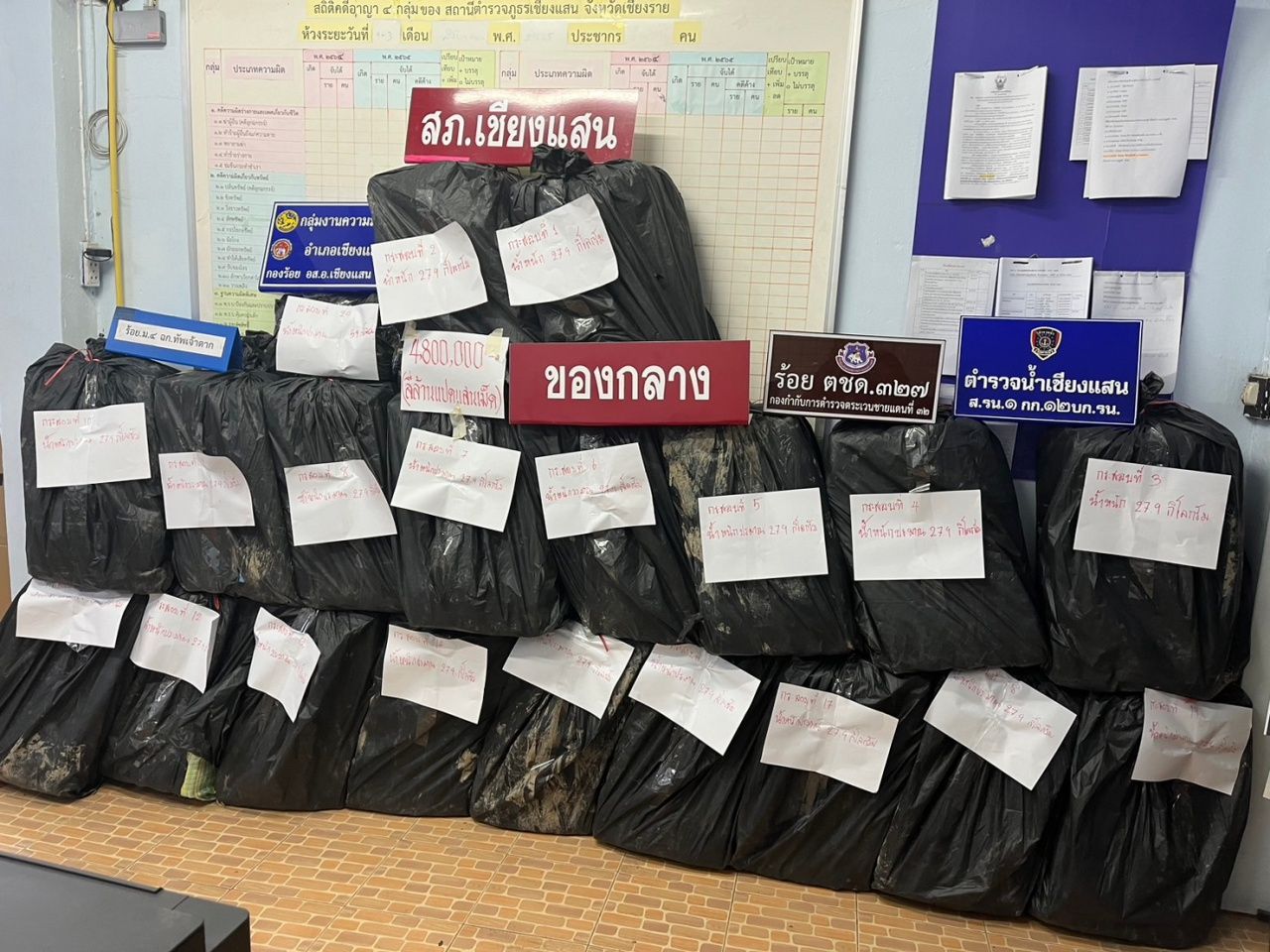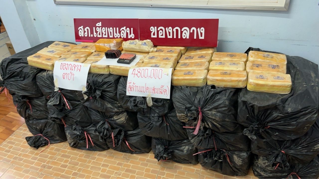 เชียงราย ตำรวจ สภ.เชียงแสน สกัดแก๊งขนยาเสพติดตามแนวชายแดน ตรวจยึดยาบ้า 4.8 ล้านเม็ด ซุกท้ายรถกระบะและห้องโดยสาร ส่วนคนขับกระโดดแม่น้ำโขงหลบหนีไปได้