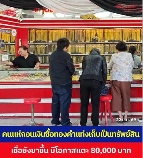 คนแห่ถอนเงินซื้อทองคำแท่งเก็บเป็นทรัพย์สิน เชื่อยังขาขึ้น มีโอกาสแตะ 80,000 บาท
