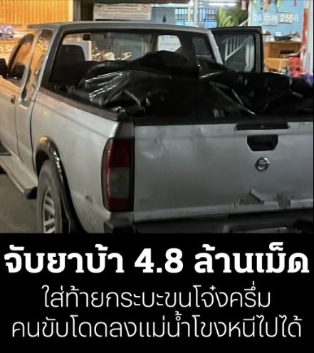 สกัดจับได้อีกลอตใหญ่ยาบ้า 4.8 ล้านเม็ด ซุกท้ายรถกระบะ คนขับกระโดดลงแม่น้ำโขงหนีไปได้